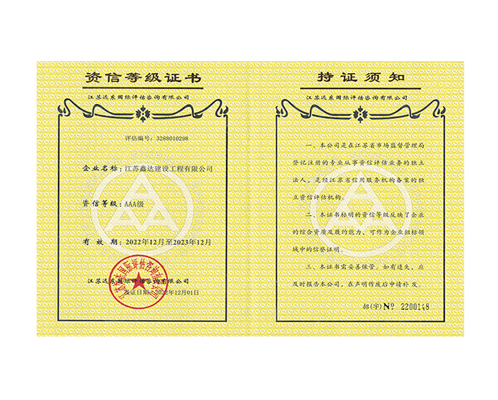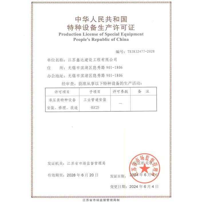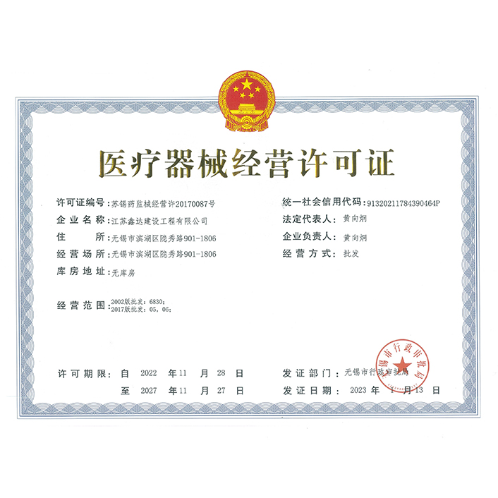 • 特种设备安装改造维修许可证(压力管道) • 安全生产许可证 • 医疗器械经营许可证 • 人民银行资信证书AAA级 • 重合同守信用3A证书 •“三合一”体系认证 |