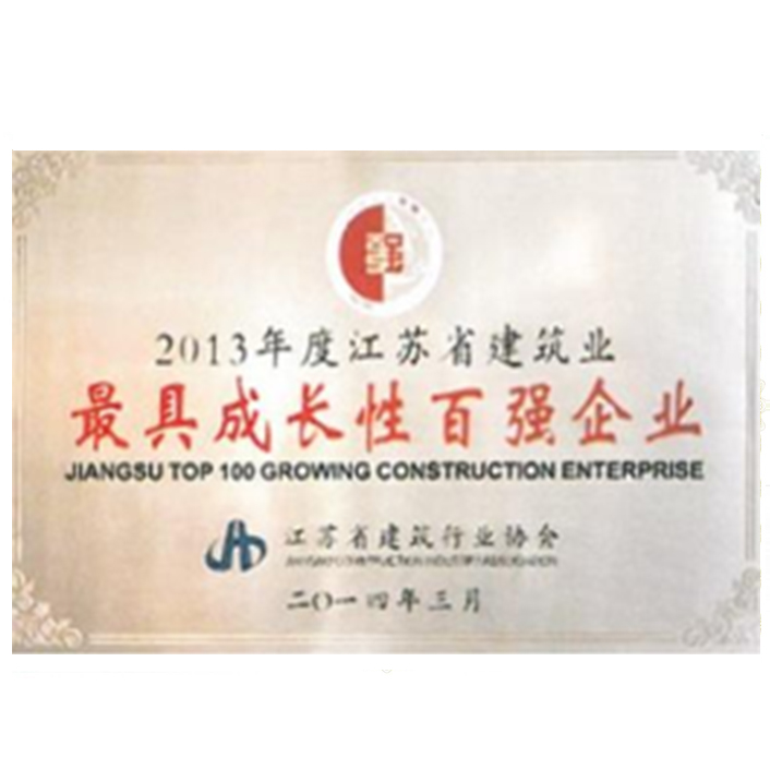 2013 Jiangsu's most powerful hundred growth enterprises in construction industry