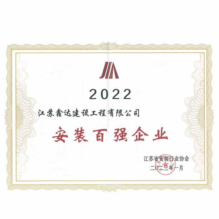 Top 100 Enterprises in the Installation Industry of Jiangsu Province in 2022