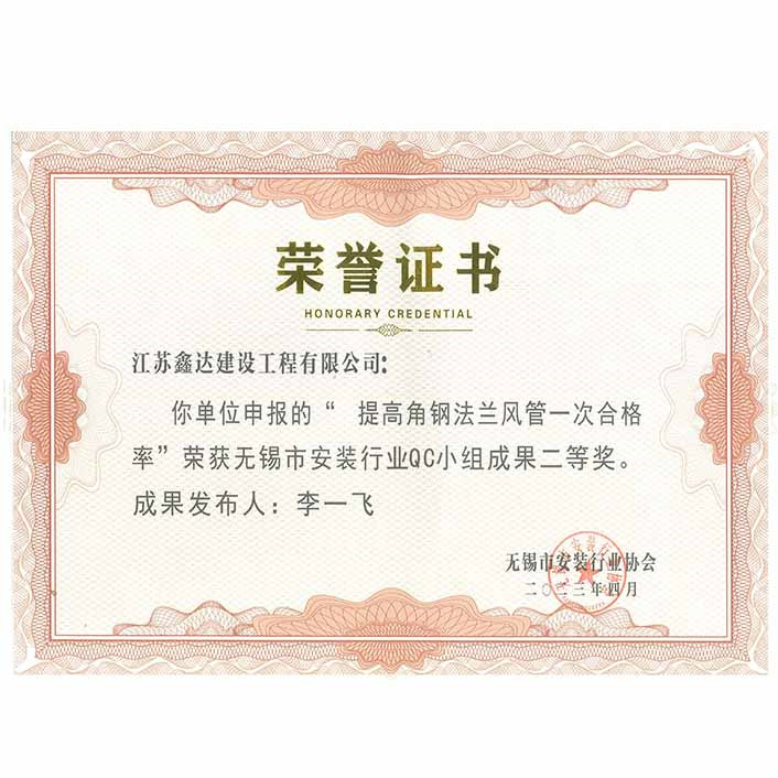 Second Prize of QC Group Achievement in Wuxi Installation Industry (Li Yifei)