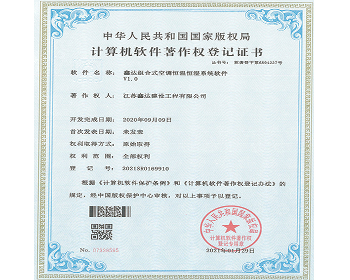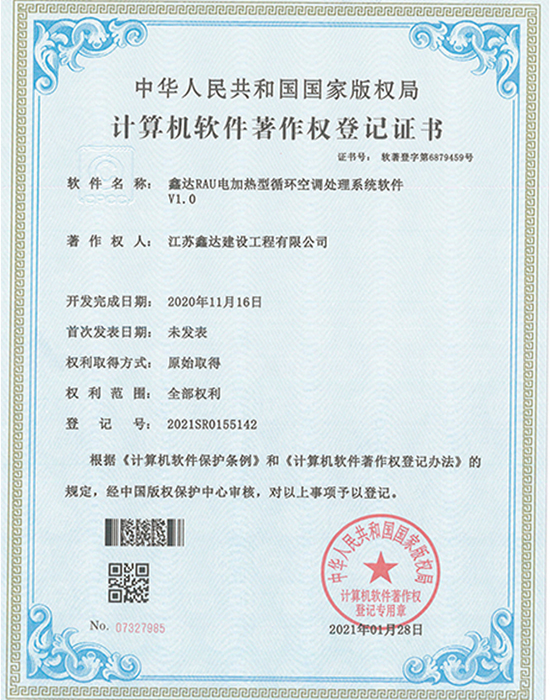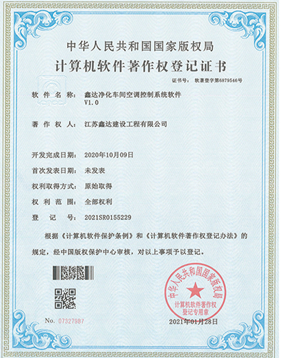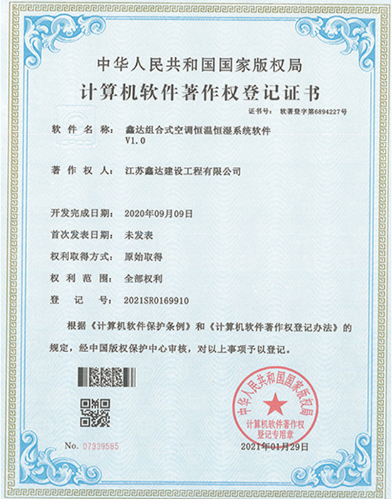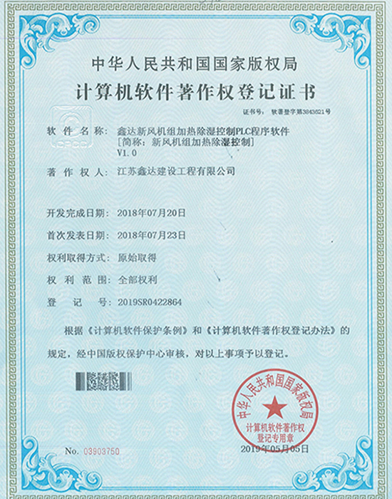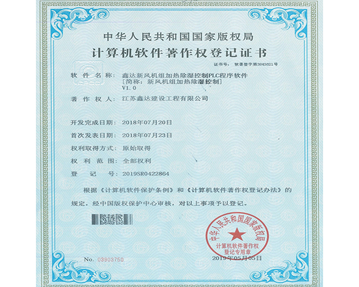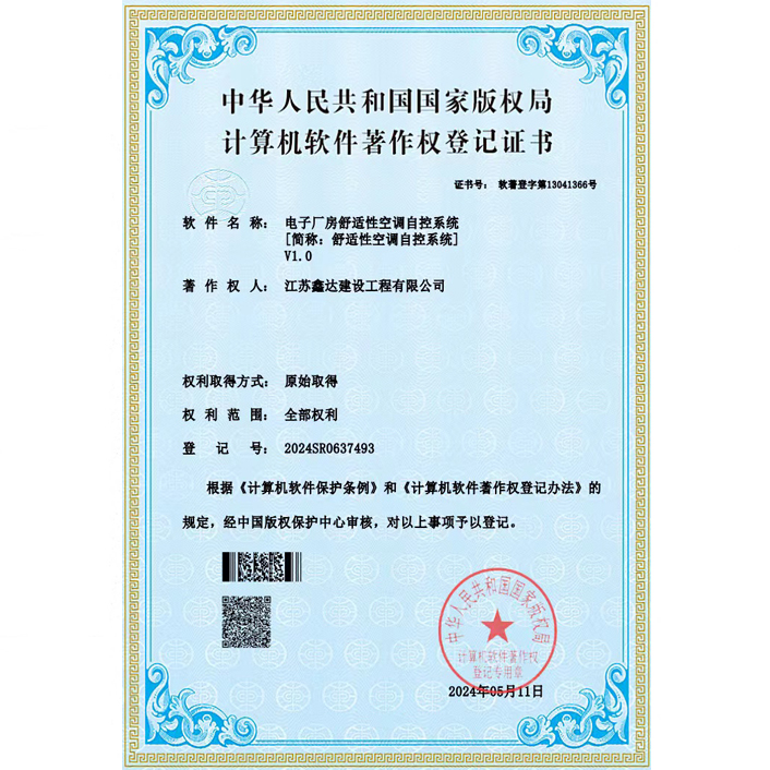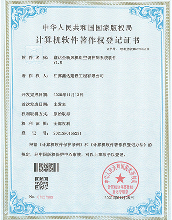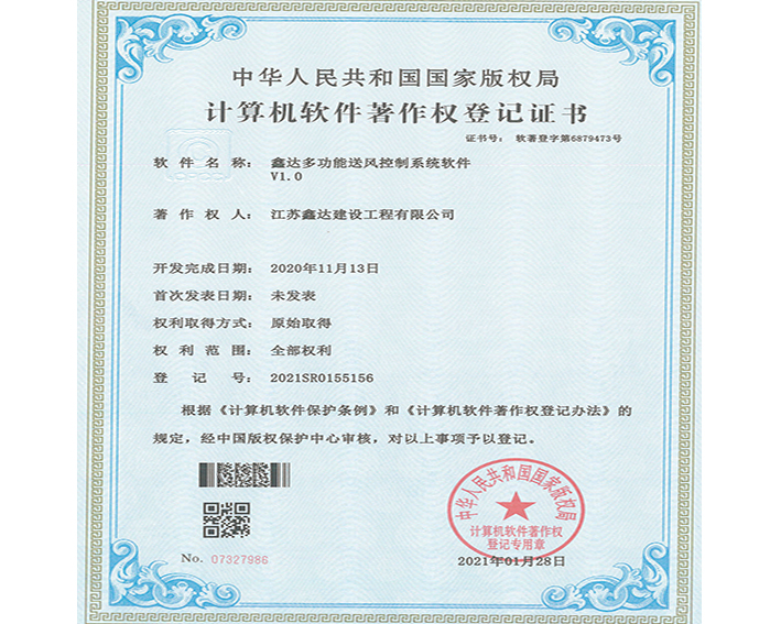• 软著:鑫达多功能送风控制系统软件 |