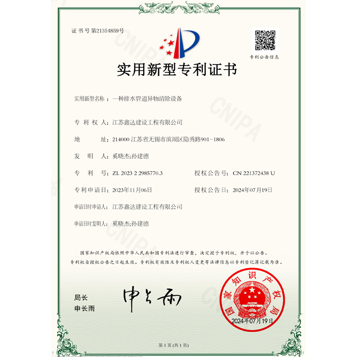 一种排水管道异物清除设备