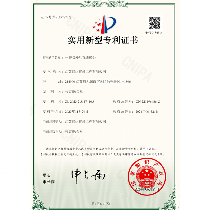 一种双外丝直接通头